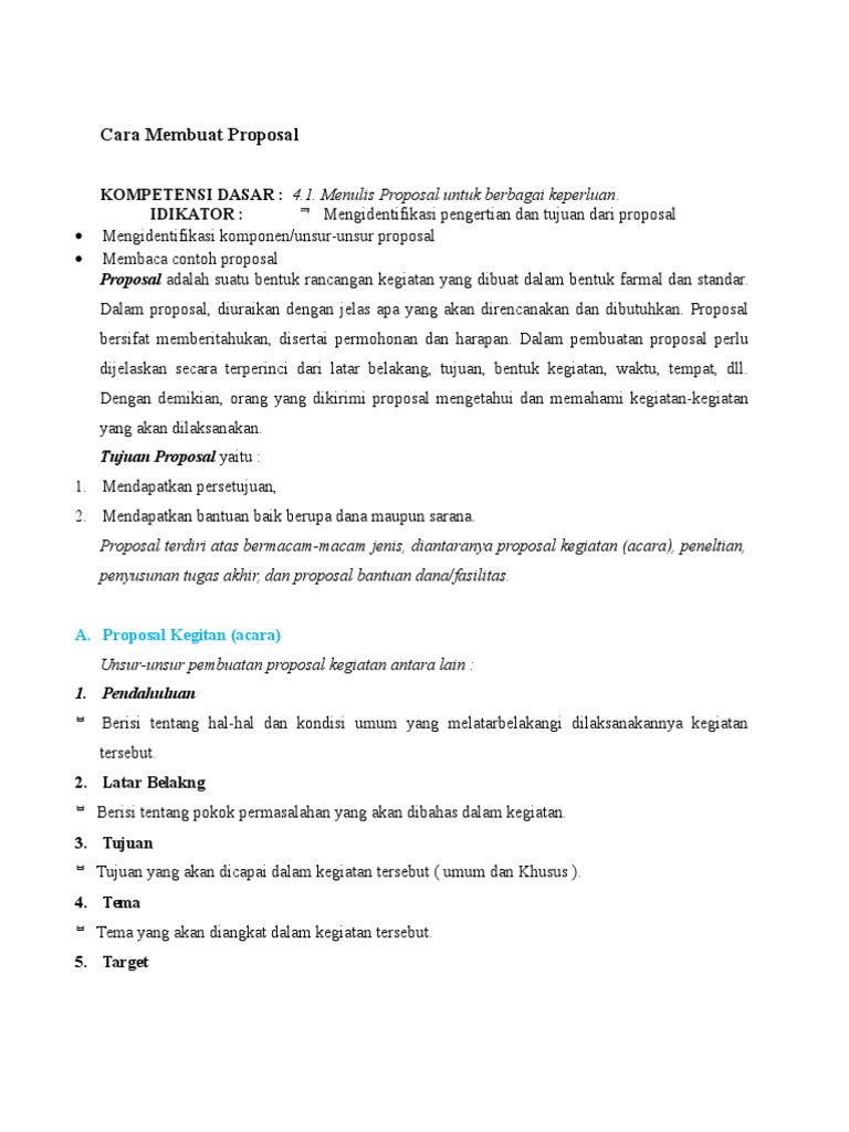 Membuat Proposal - Contoh Proposal Usaha Lengkap Dan Cara Menyusunnya. Jika dibandingkan dengan proposal penelitian tentu umumnya proposal kegiatan acara cenderung lebih mudah karena lebih sederhana. Contoh proposal usaha atau contoh proposal bisnis akn saya sampaikan dalam posting kali ini. Dengan membuat proposal, kamu akan lebih mudah untuk mengetahui kelayakan agenda yang kamu rencanakan, serta dapat membantu kamu dalam hal pendanaan dsbg. Membuat proposal yang lebih efektif. Tips menemukan ide proposal skripsi.